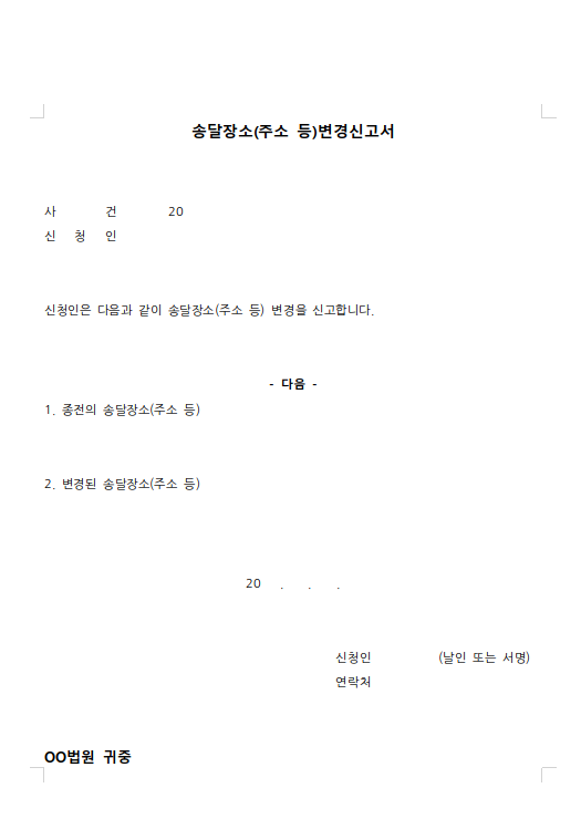 송달장소변경신고서